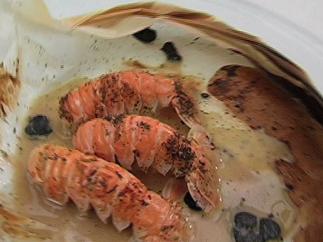 Специально для поклонников лангустов.Состав:лангустины — 6 штук;крем-фреш — 1/2 чашки;лук — 1 штука;шерри — 1/4 чашки;трюфеля — 2 штуки;французские травы, белый перец, оливковое масло, морская соль — по вкусу.